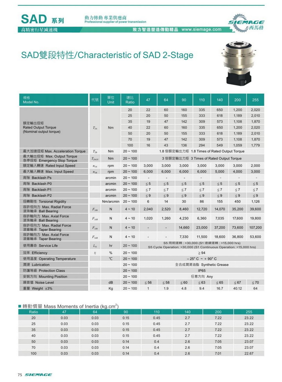 西馬格SAD減機減速比: